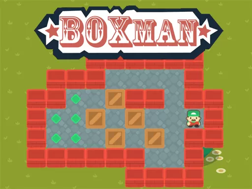 Boxman Sokoban is a free classic box-pushing puzzle game. The objective is to put all the boxes in the marked positions by pushing one at a time. There are 100 levels to play.