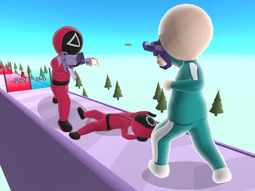 Squid Game legend continues with Gun Fest game. Two of the most popular games of recent times are now gathered in one game. Gun Fest game is with you with Squid Game theme. Try to increase your weapons by doing math operations and destroy the Squid Game employees that you come across! The killer doll may appear sometimes and you must increase your weapon count as much as possible to destroy it. You have to shoot and destroy the obstacles in order to pass many obstacles. When you reach the final line, you can have the proceeds by destroying the robber car. You can buy new weapons with the money you earn. Start the game right away with endless levels and 6 different weapons. Have fun!
